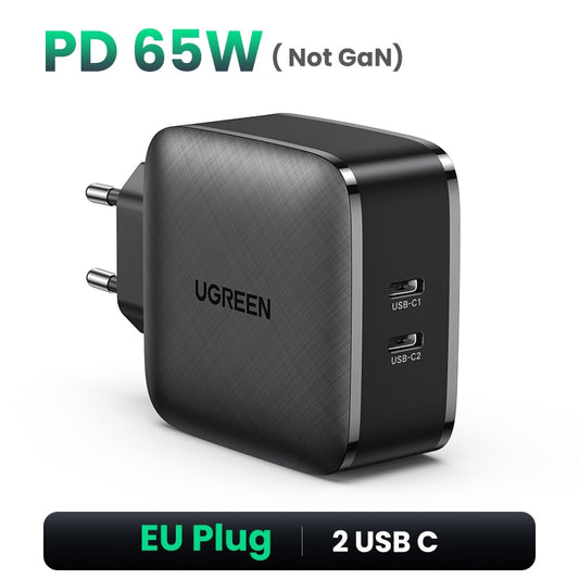Cargador UGREEN 66W con 2 Conectores Tipo C Carga Super Rápida (Pixel,Apple,Samsung)